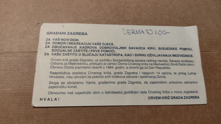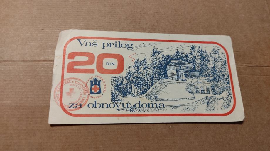 CRVENI KRIŽ - ZAGREB - BON 20 DINARA - ZA OBNOVU DOMA