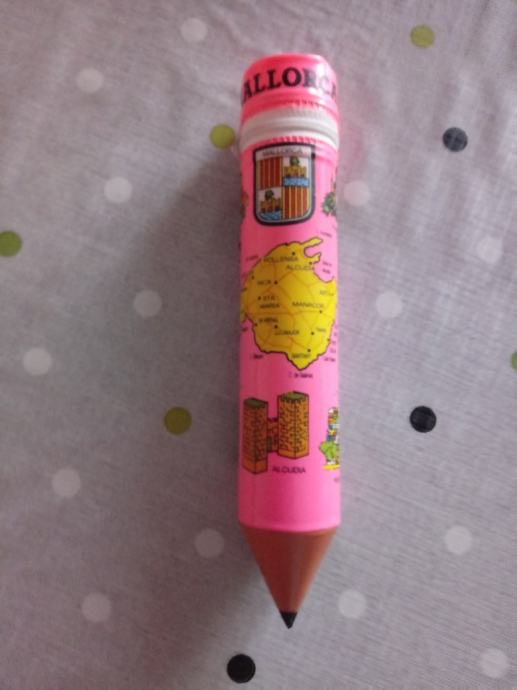 Prodajem djecju pernicu u obliku olovke,suvenir sa Mallorce.Stara je 35 godina i sacuvana.Duzina je 24 cm i promjera 4 cm.