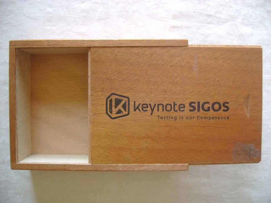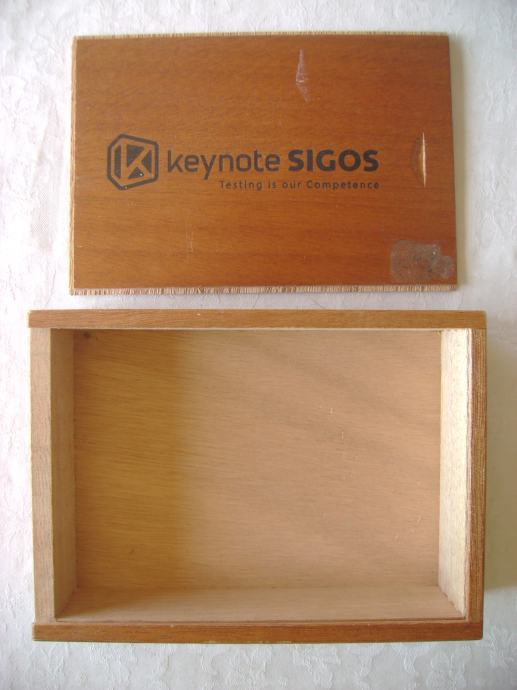 Drvena kutija - Keynote SIGOS Chocolissimo - stara reklamna (poklon) kutija u kojoj su bile praline, dimenzije su cca 14 x 10 x 3,5 cm, odlično očuvana - stanje je vidljivo na slikama.