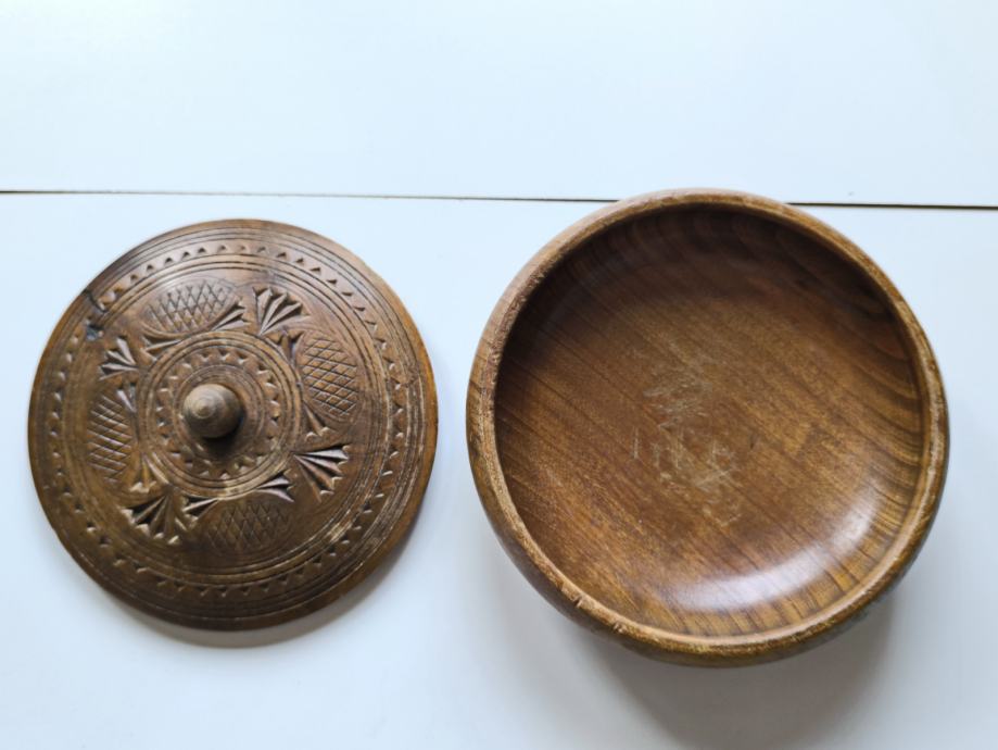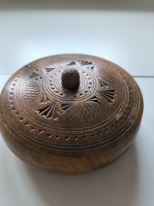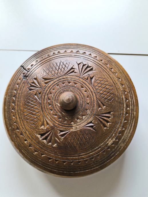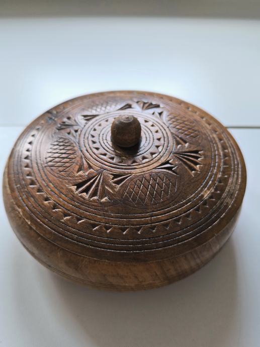 Drvena rezbarena vintage kutija za nakit od maslinovog drveta