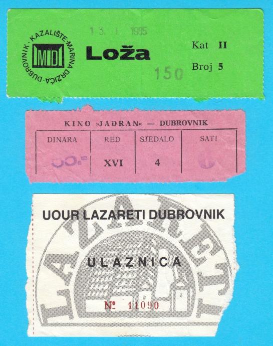 DUBROVNIK lot 3. stare ex Yu ulaznice - Kazalište Marin Drić & Kino Jadran & UOUR Lazareti