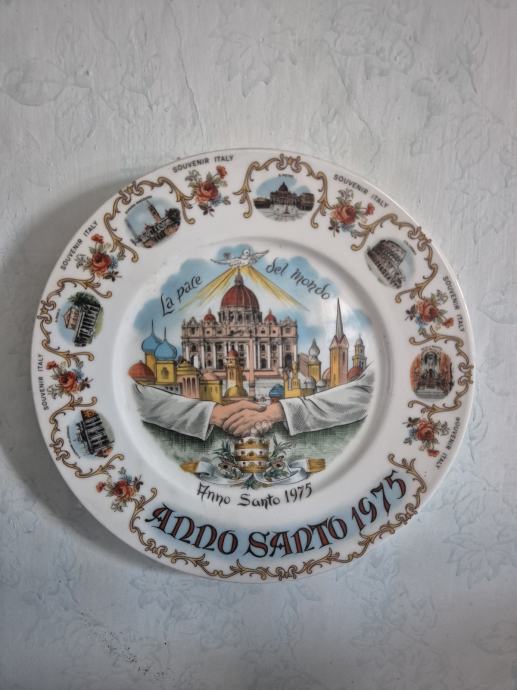Manji, promjera 20 cm prikazuje baziliku sv. Petra i grb Pavla VI, sa plavom oznakom porculana Furstenberg.