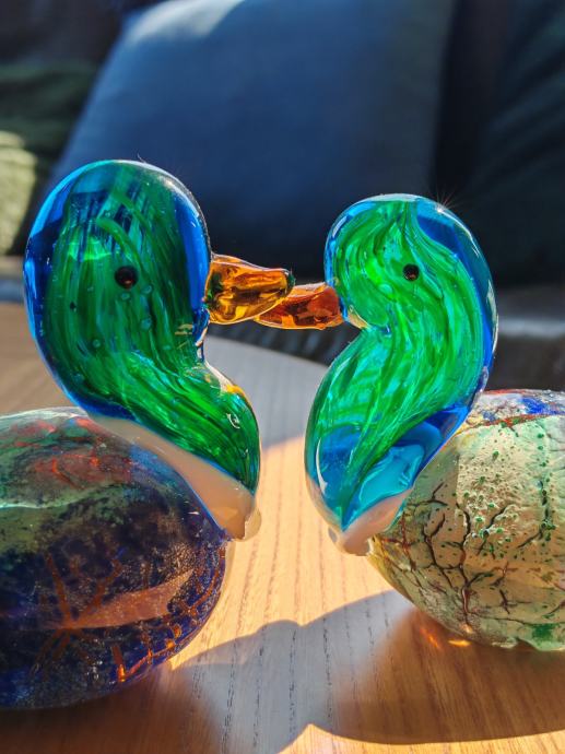 Dvije predivne patke od Murano stakla. Velicina jedne patke 10 cm.