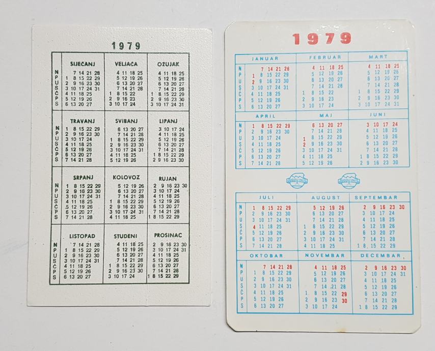DŽEPNI KALENDAR, 2x KALENDARIĆ, LOT, iz 1979 godine