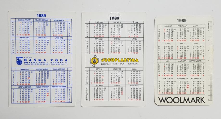 DŽEPNI KALENDAR, 3x KALENDARIĆ, LOT, iz 1989 godine
