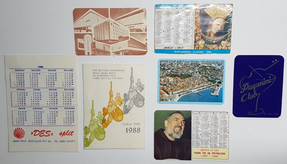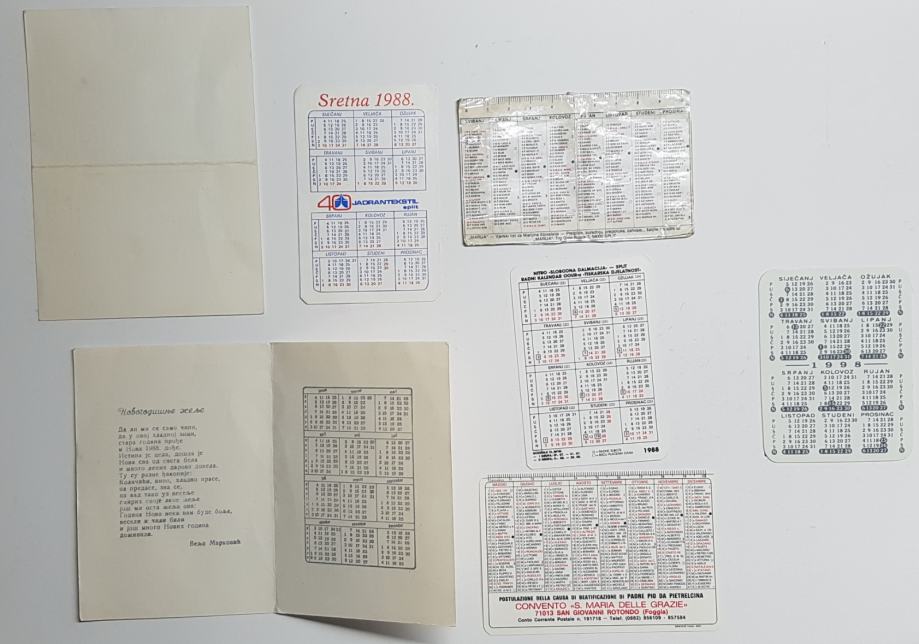 DŽEPNI KALENDAR, 7x KALENDARIĆ, LOT, iz 1988 godine