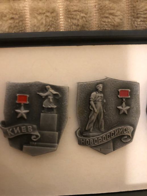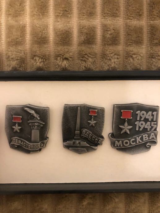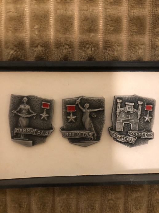 Deset gradova heroja iz bivšeg Sovjetskog saveza, bedževi, neoštećeno, kupljeno u Moskvi oko 1980.g. Kutija veličine 35 x 7,5 x 3 cm. Cijena se odnosi na komplet. Ne prodaju se pojedinačno.