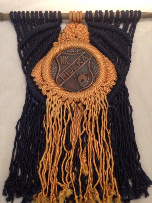 Makrame,ručni vez grba nogometnog kluba NK Rijeka na mesingu,efektan suvenir.... vintage za kolekcionare......