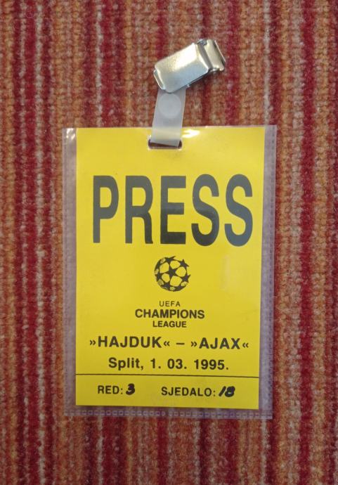 Press propusnica za legendarnu utakmicu. Odlično očuvano. Cijena 100€.