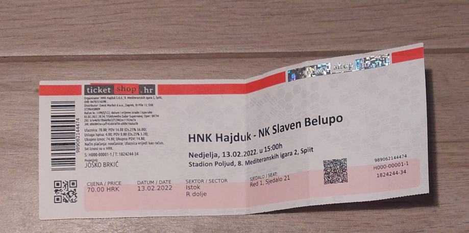 HAJDUKOVA ULAZNICA/KARTA , HAJDUK-SLAVEN BELUPO ,2022.