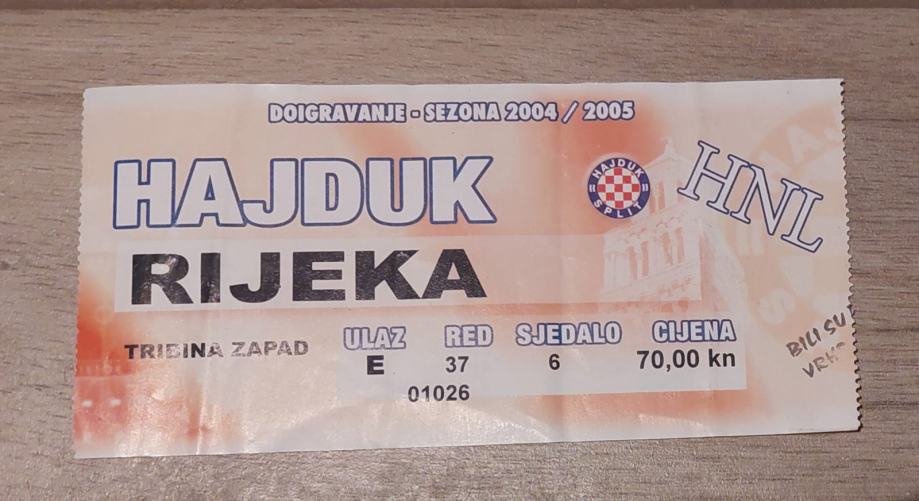 HAJDUKOVA ULAZNICA/KARTA , HAJUDK-RIJEKA ,2004/2005