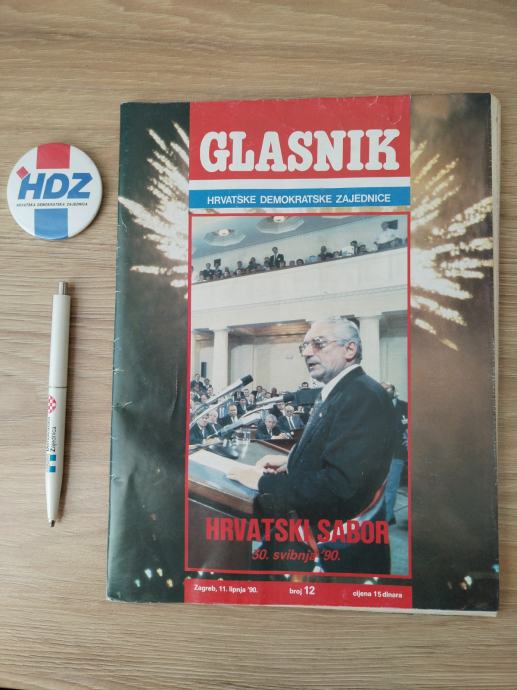 Bedž HDZ i GLASNIK HDZ-a i ostalo iz 1990. godine, odlično očuvano, prikladni kao suveniri, prodajem.