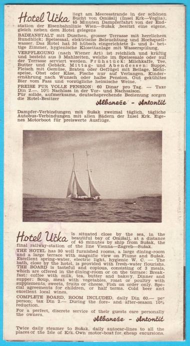 HOTEL UČKA - OMIŠALJ (otok Krk) stara predratna Art-deco brošura 1930s