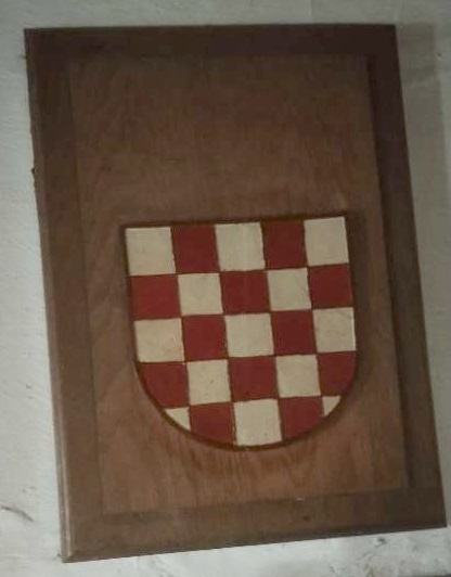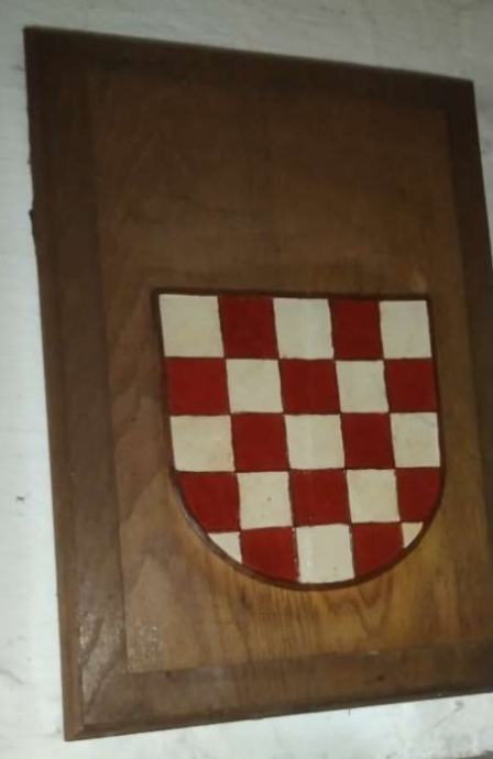 Drveni reljefni, dimenzije ploče 28x38cm, dimenzije grba 16,5x16,5cm. Pogodan suvenir za razne vinske Kleti, podrume ili slično. Šaljem poštom ili busem nakon vidljive uplate cijena 50€. Dostavu plača kupac.