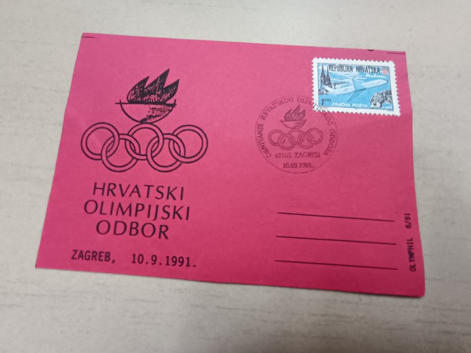 Hrvatski olimpijski odbor; dopisnica iz 1991.
