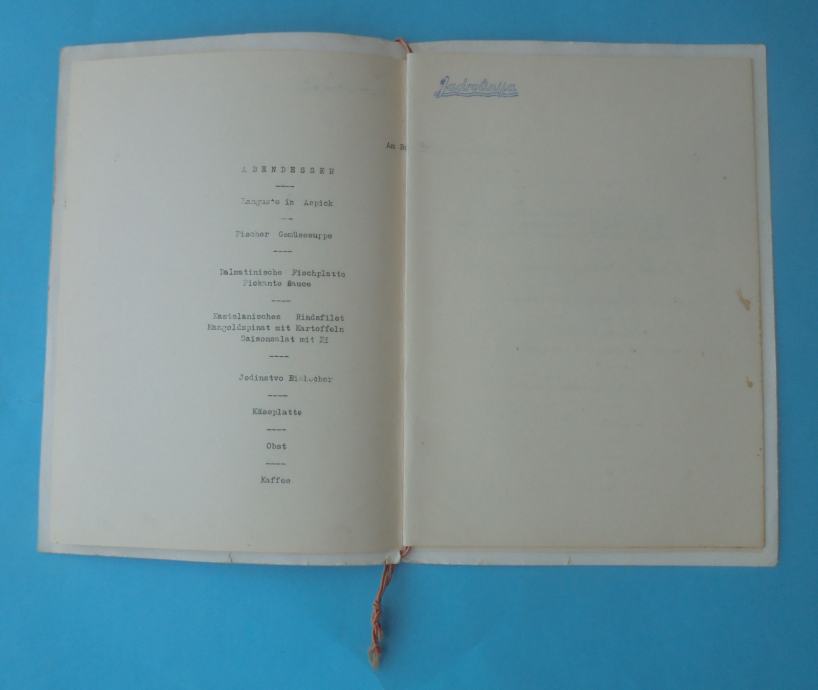 Stari originalni menu iz 1964. godine.