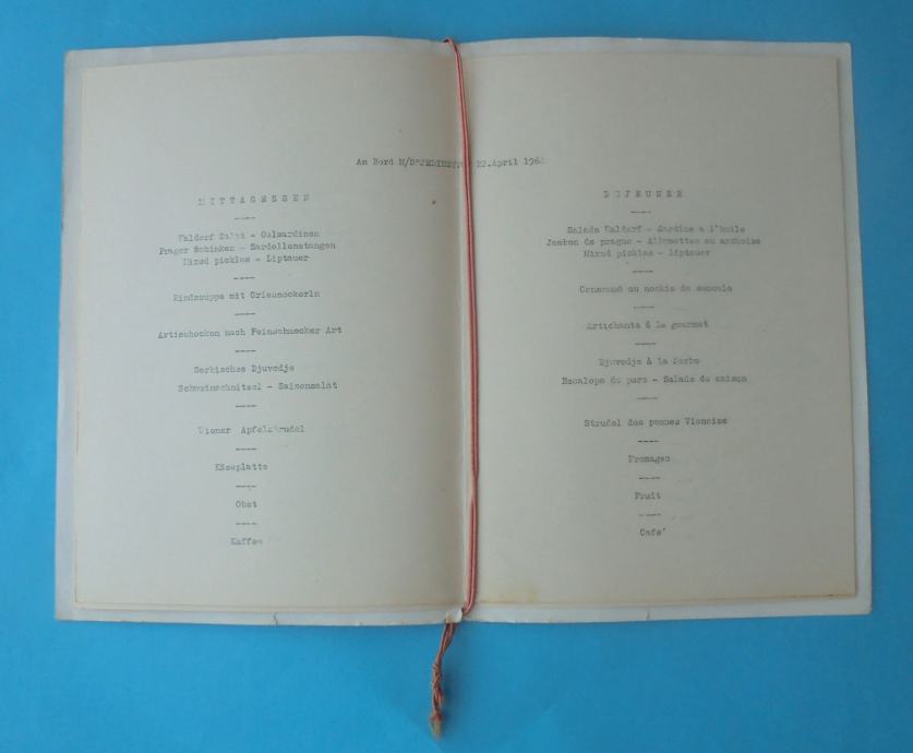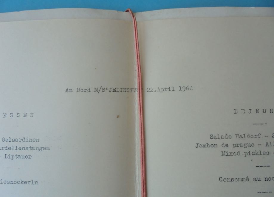 JADROLINIJA Rijeka - m/s Jedinstvo * stari menu (jelovnik) iz 1964. g.