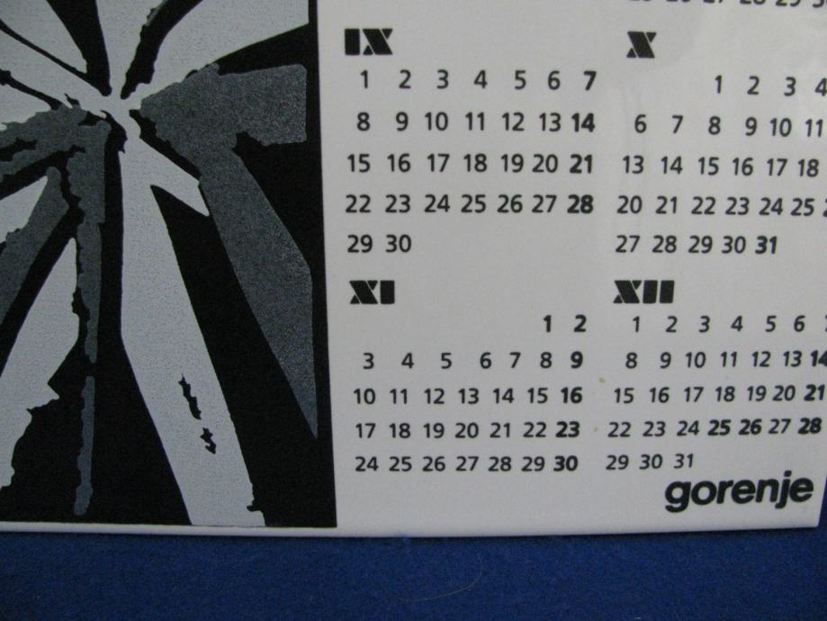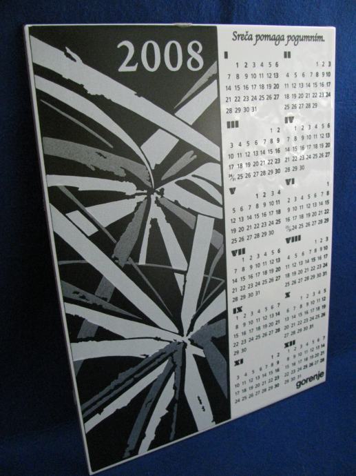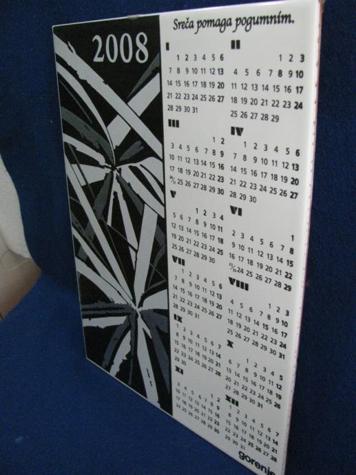 Kalendar 2008 god GORENJE. Keramička ploća 25 x 33,5 x 0,5 cm. SAND