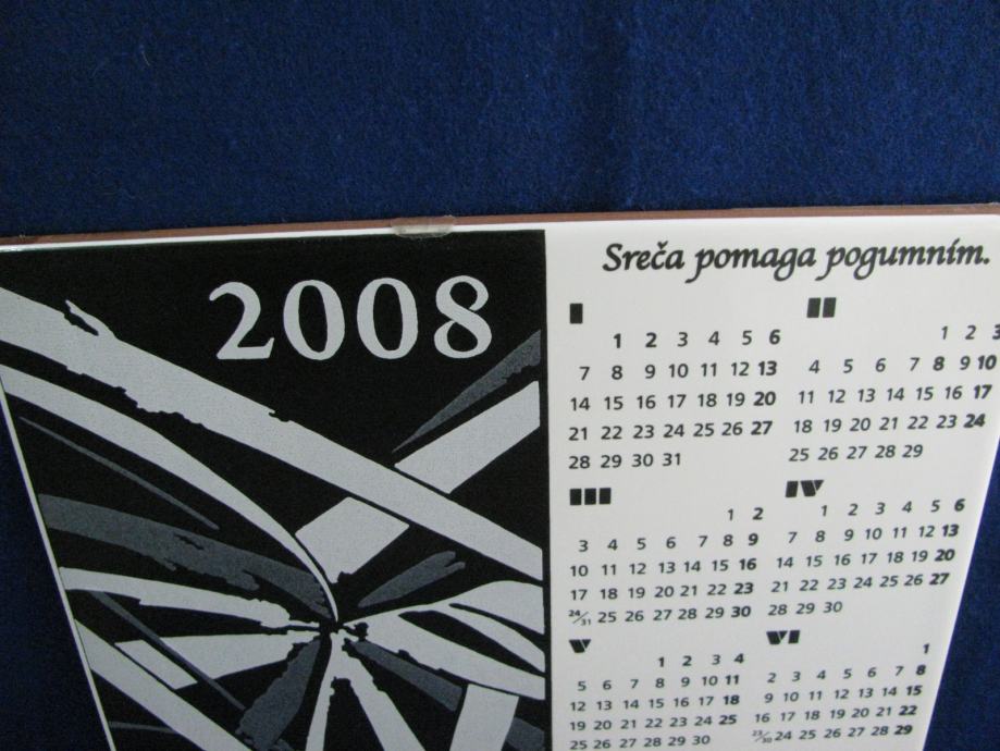 Kalendar za 2008 izračen na keramičkoj ploćici.