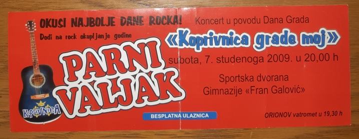 Prodajem kartu za koncert od Parnog valjka koji se održavao u gradu Koprivnica za dan grada 2009 god