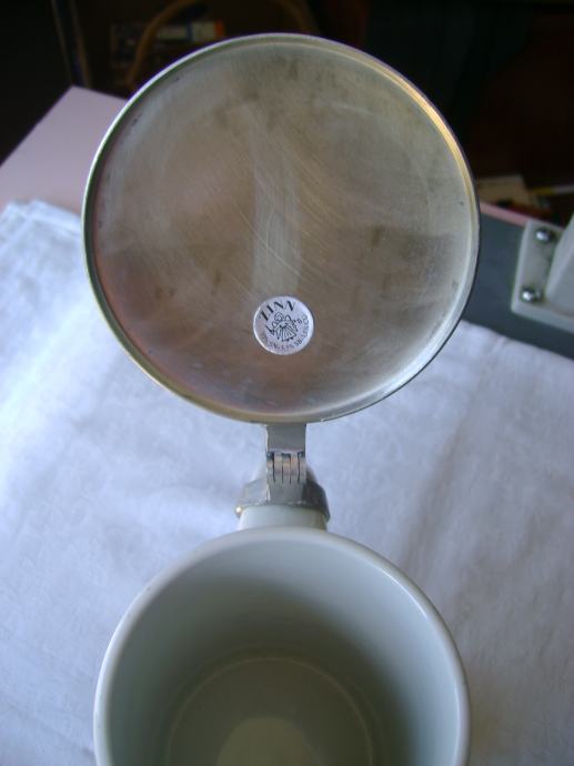 Keramička krigla za pivo sa poklopcem od zina - motiv Petre Moll