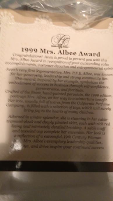 Kolekcionarska lutka Mrs. Albee Award, 1999