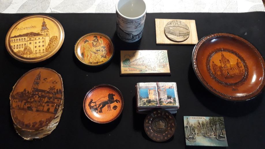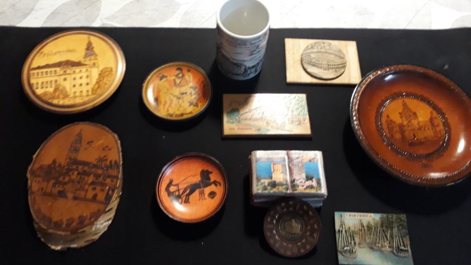 Razni.suveniri vecinom.manjih dimenzija.predmeti su u dobrom stanju raznih materijala i oblika.