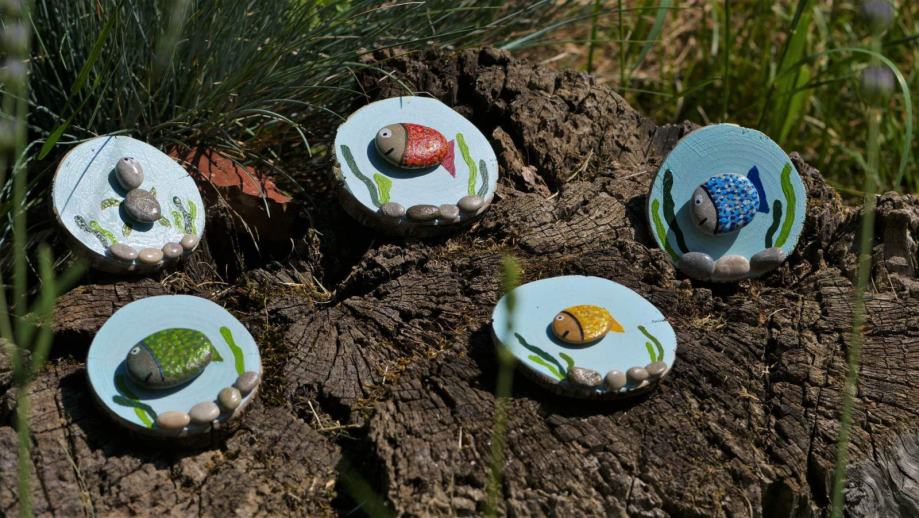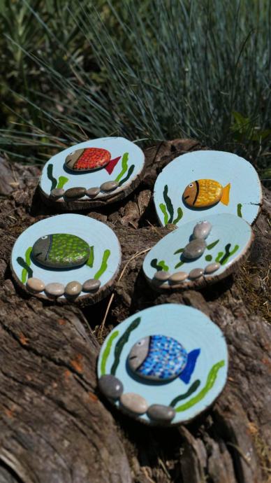 Ručno rađeni magneti od drva i kamenčića.