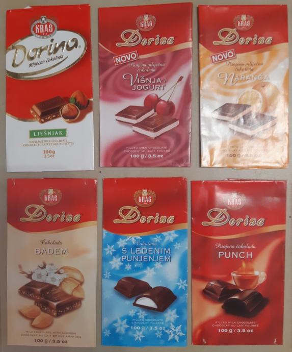 Prodajem nekoliko različitih omota Dorina (Kraš) čokolade sakupljanih od 2003-2007 god koji su vrlo sačuvani i rijetki.