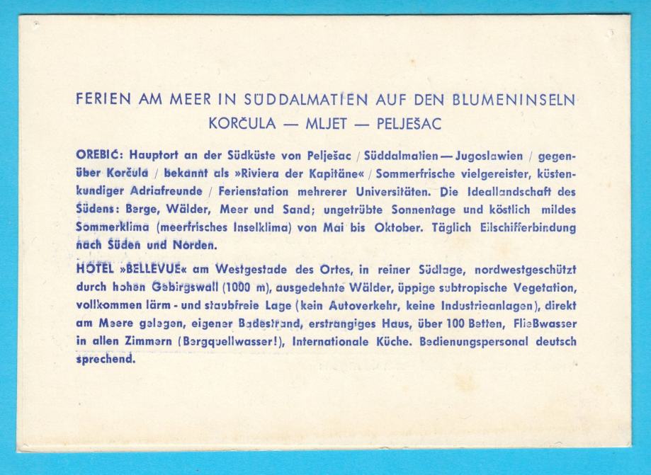 OREBIĆ - HOTEL BELLEVUE (1955. g.) ex Yu turistički prospekt brošura