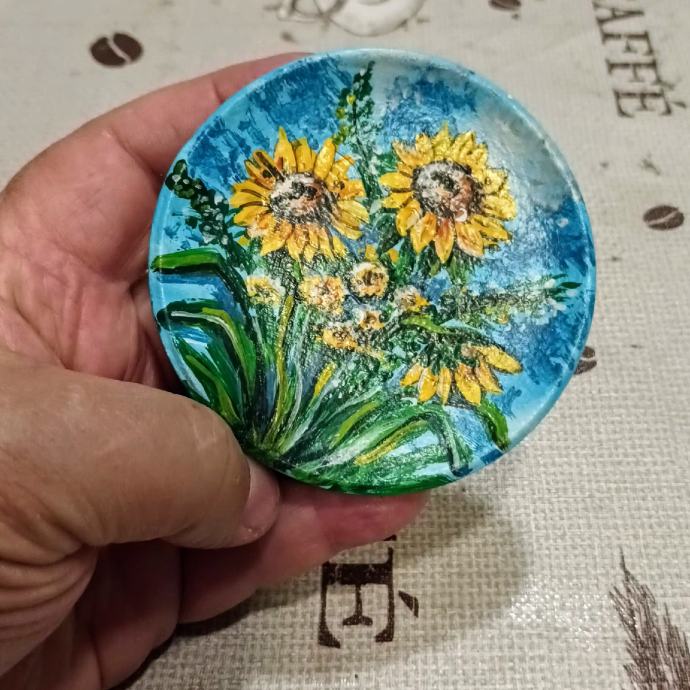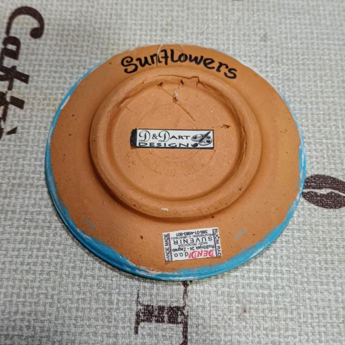 Oslikani umjetnički tanjurić, akril boje - cvjetni motiv - promjer 9 cm