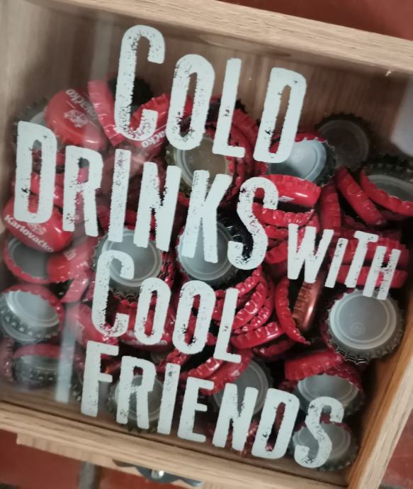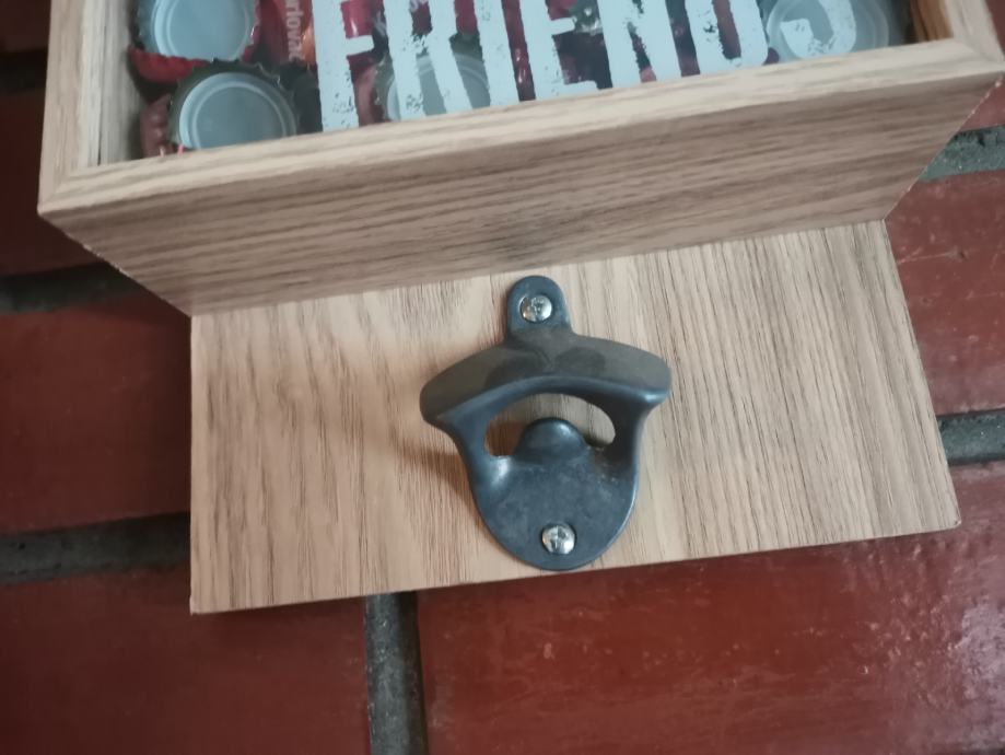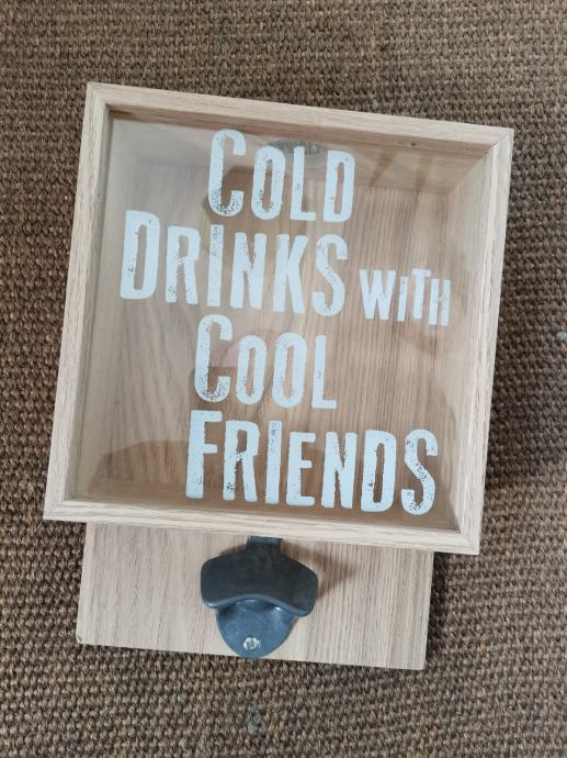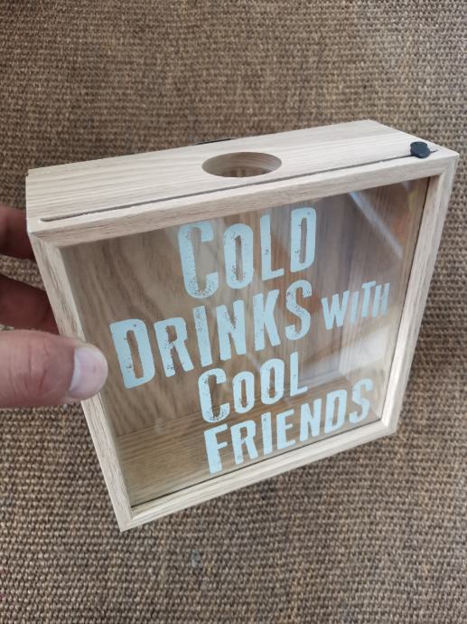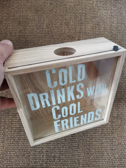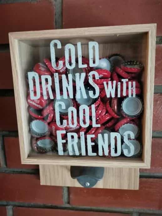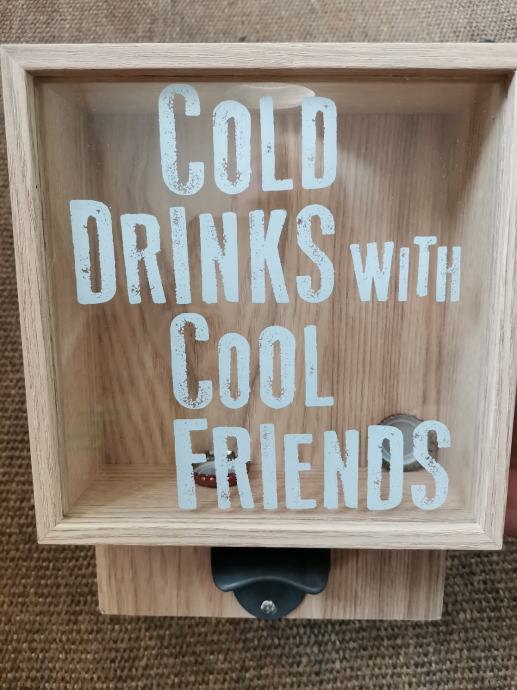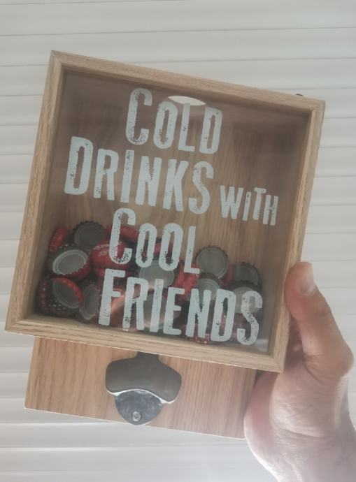 Ovarač za pivo-vino koji se montira na zid, u kutiju se ubacuju čepovi. Staklo je pomično da se čepovi mogu izvaditi.