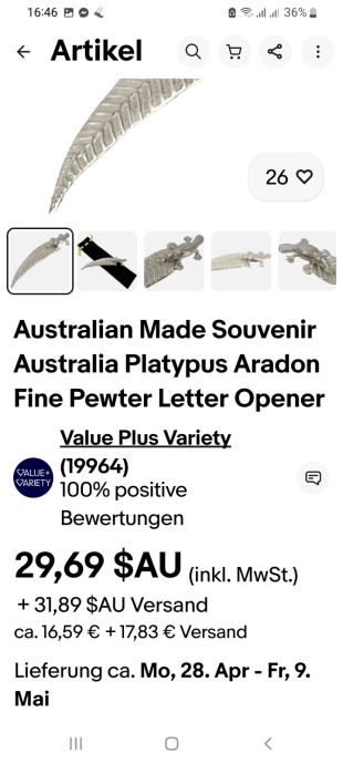 Cijena novoga kod narudžbe iz Australije je 17EUR plus 17EUR dostava.