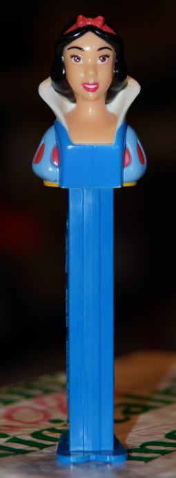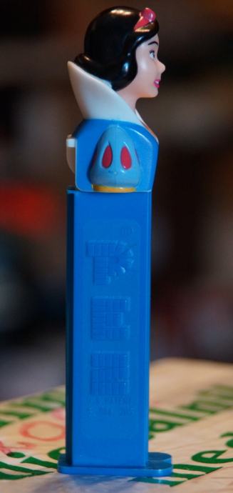 Fotografija 1. - 4. Originalna PEZ figurica SNJEGULJICA. Nosi oznaku PEZ R 6 i tekst: U. S. PATENT 5. 984. 285 - CIJENA 9,99 €