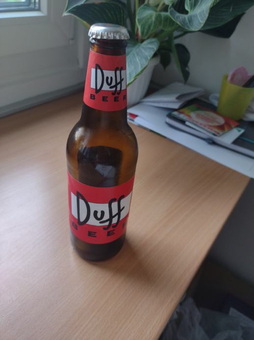 prazna boca Duff BEER kupljena u San Marinu 2024.godine.
