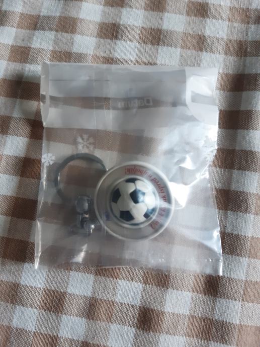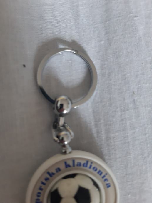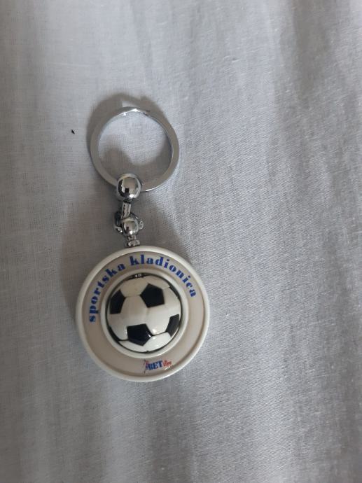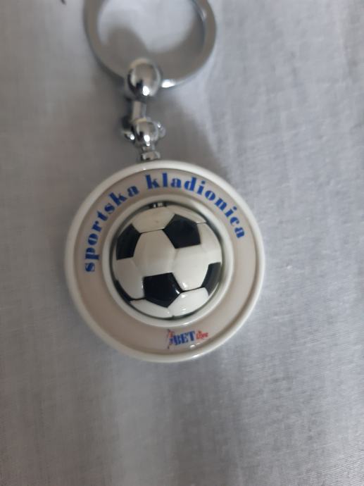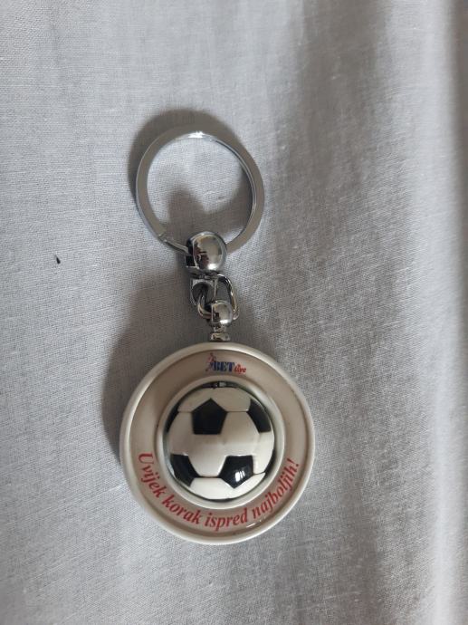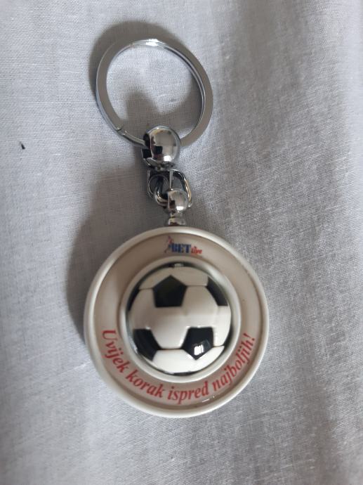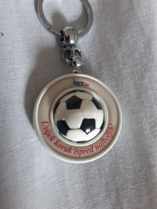 Izrazito rijedak i kvalitetan privjesak za ključeve kladionice BET LIVE. Privjesak je novi. Stiliziran kao rotirajuća nogometna lopta u alci. Metalni dio od inoxa, jak i čvrst. Lopta je od specijalne plastike. Promjer 40 mm. (-1)