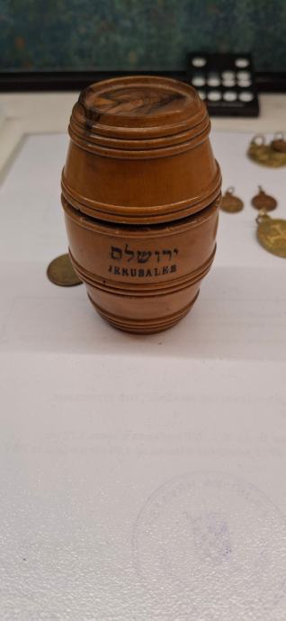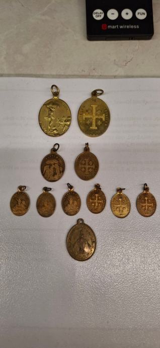 Dosta stari privjesci vjerske tematike. Davno donešeni iz Jeruzalema. 11 komada. Dobijete i drvenu bačvicu također iz Jeruzalema. Cijena je za sve u kompletu.