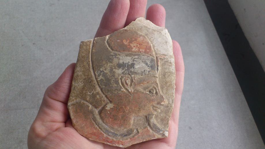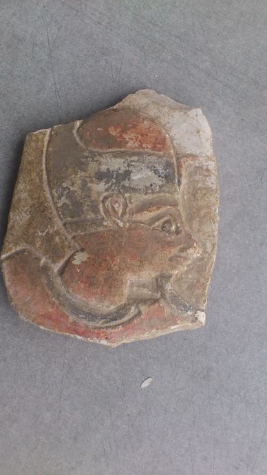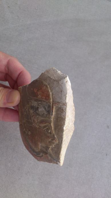 Fragment rezbarije u kamenu koja prikazuje faraonov profil. Izrađena 50-tih godina prošlog stoljeća u Egiptu kao turistički suvenir.