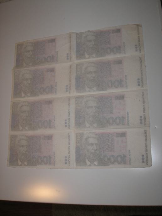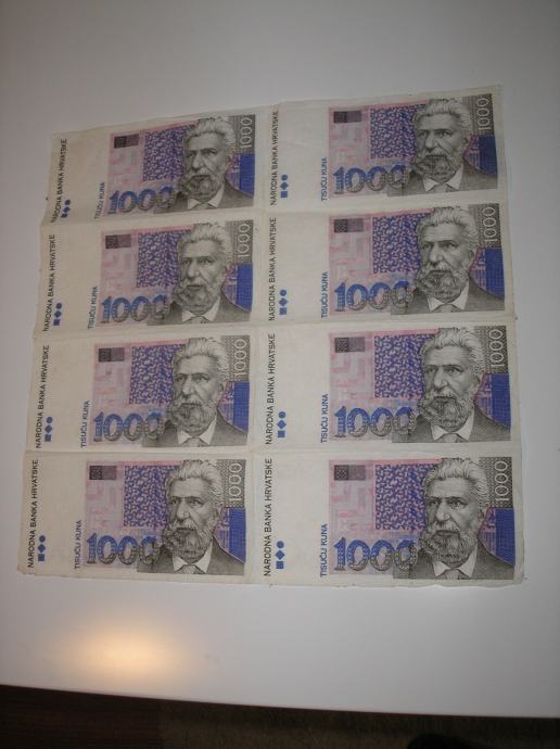 Salveta sa novčanicama od 1000 (tisuću) kuna