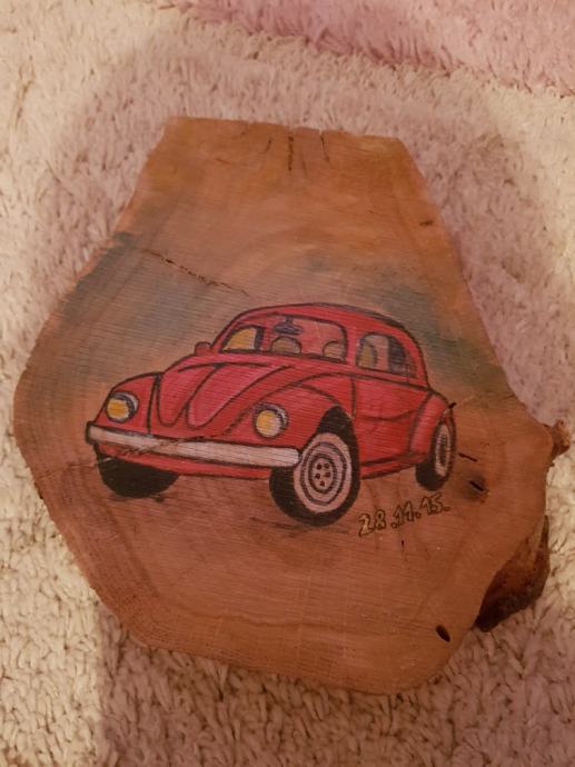 Motiv je vw Buba...ručni rad...lakirano..težina oko 1 kg...puno drvo..