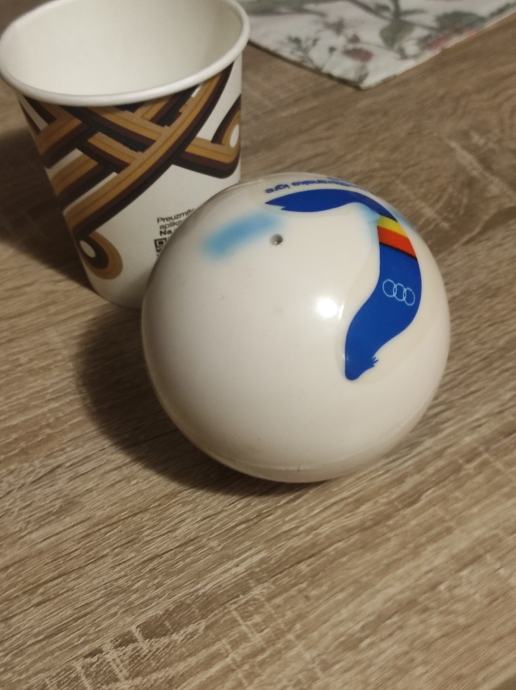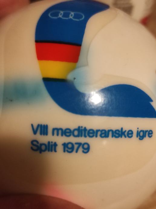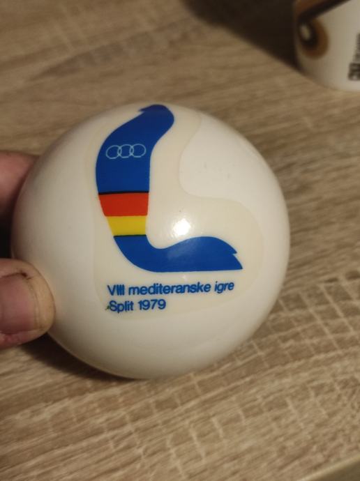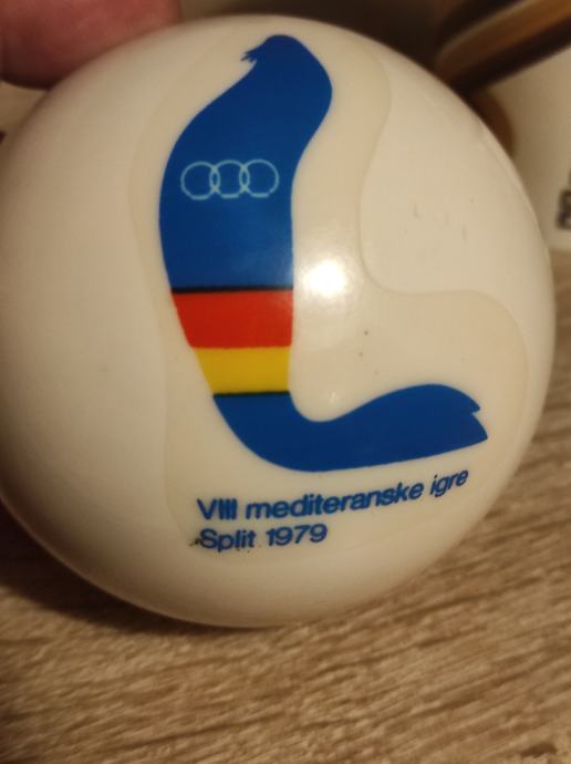 Mediteranske igre u Splitu 1979 godine,loptica za picigin. loptica bila od mog djeda koji je bio sudac na navedenim igrama,ocuvana kao da je sada izisla iz trgovine ,top stanje,napuhana.Saljem Postom ili tiskom ili u dogovoru sa kupcem, molim slati poruke na Viber ili njuskalo a mozete me i nazvati. Loptica je stara 45 godina,a izgleda sacuvano i u extra stanju, uspomena za cijeli život.Pogledaj slike!!