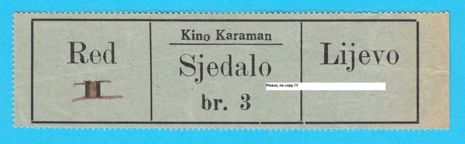SPLIT - KINO KARAMAN stara predratna originalna kino ulaznica iz 1930s