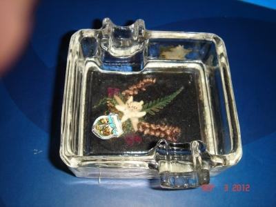 suvenir staklena pepeljara sa ustakljenim runolistom iz Heilgenbluta Švicarska