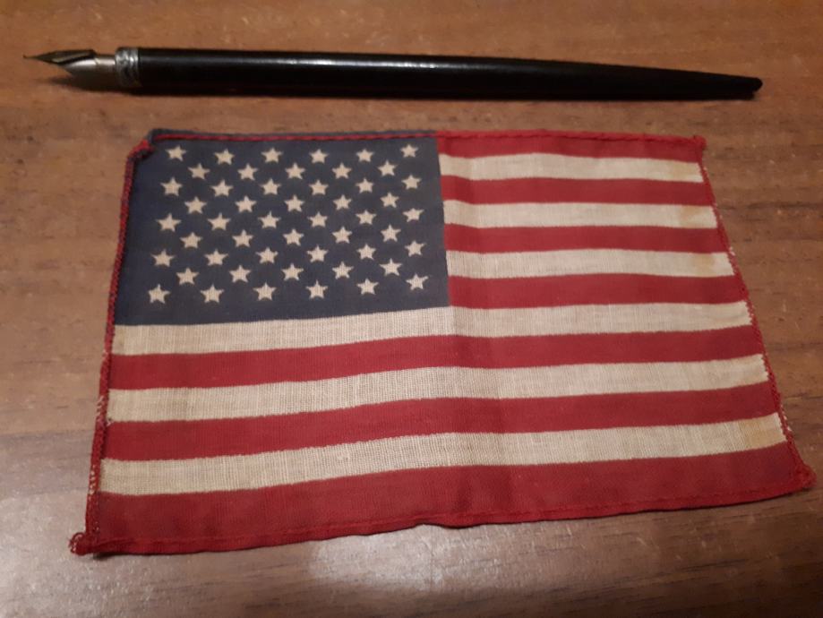 Stara zastavica, sredina 60- tih prošloga stoljeća, na fotografiji, drveno nalivpero orijentir za dimenziju