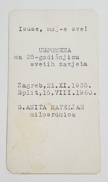 STARA SVETA SLIČICA, 25 god. ZAVJETA ANITA MATELJAN MILOSRDNICA, 1960.