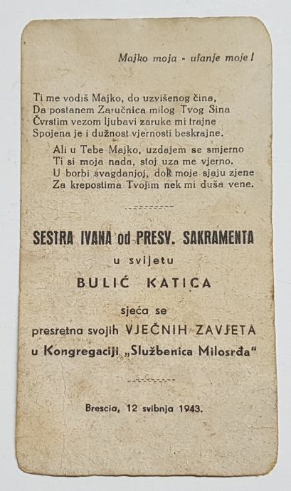 STARA SVETA SLIČICA, SLUŽBENICA MILOSRĐA, BULIĆ KATICA, BRESCIA 1943.