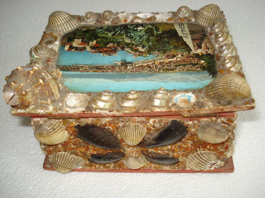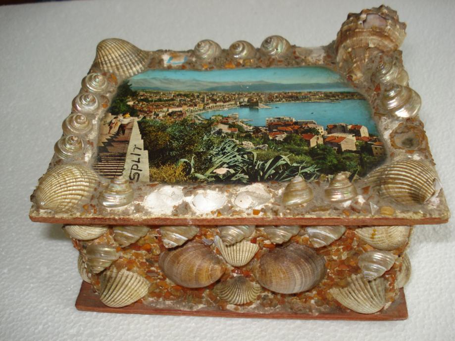 Stari turistički suvenir-kutija sa školjkama - pozdrav iz Splita