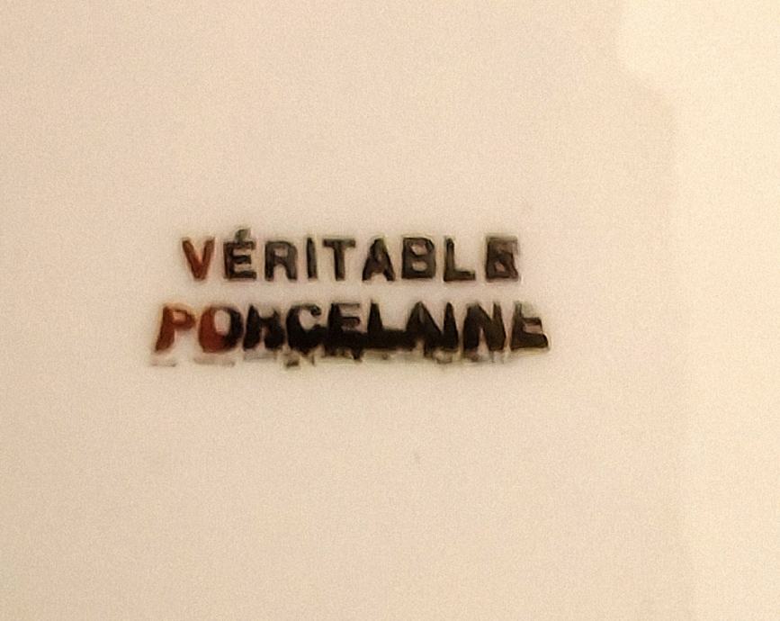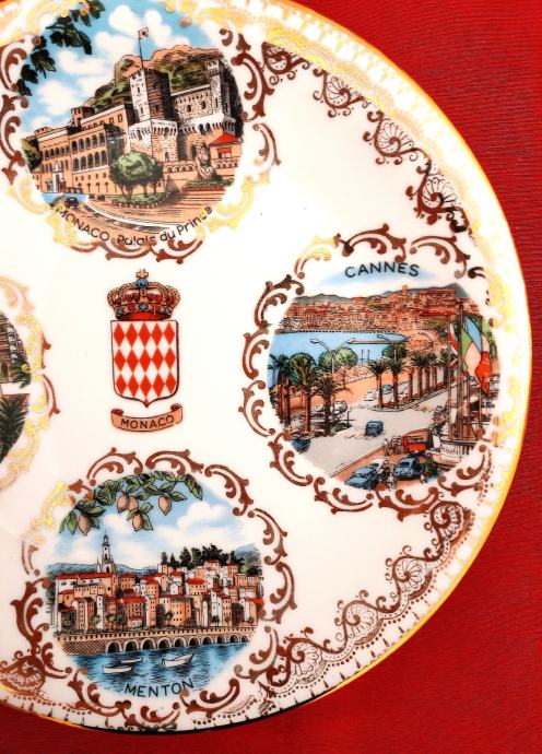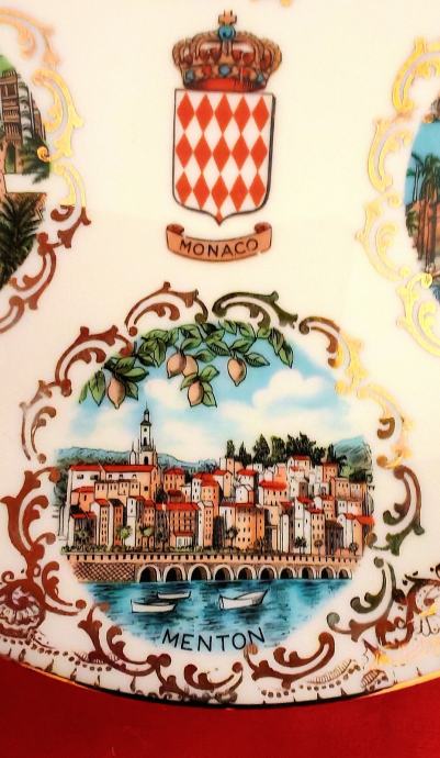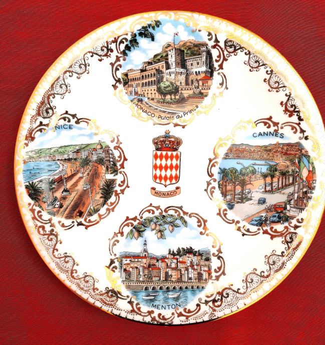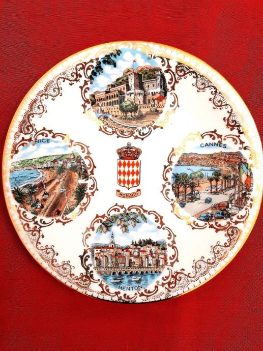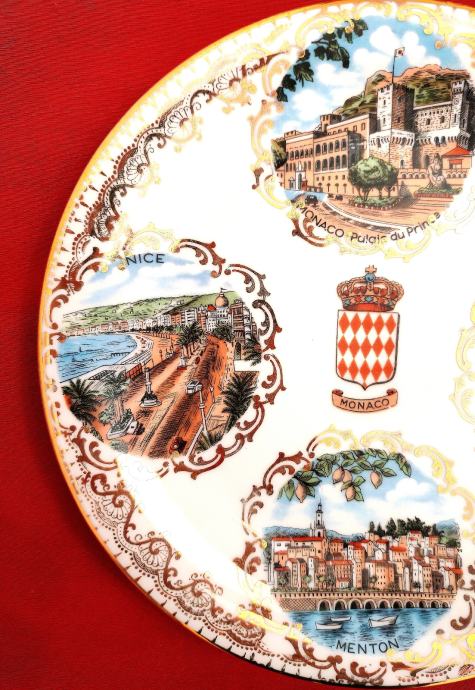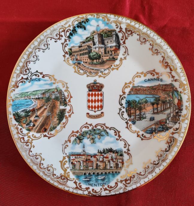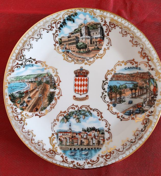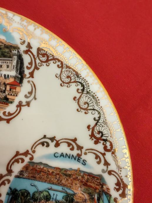 Stari ukrasni tanjur promjera 18 cm sa motivima Azurne obale iz poznatog Veritable Limoges porculana sa po zlatom.