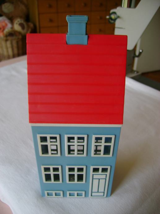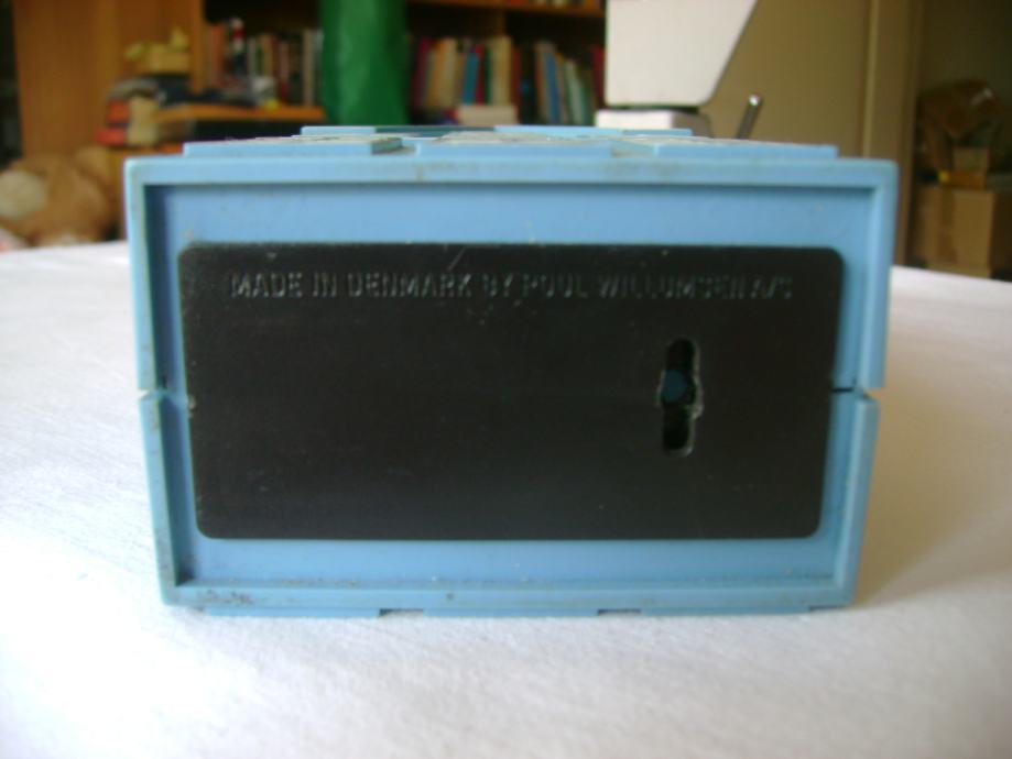 Prilično rijetka plastična štedna kasica Podravske banke, kolekcionarska, dizajnera Poula Willumsena iz Danske, 8 x 5 x 19 cm, nažalost nedostaje ključ, stanje je vidljivo na slici.
