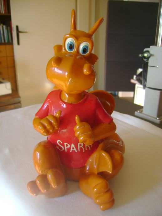 Štedna kasica Sparki, keramička, visina cca 21 cm, bez čepa, stanje je vidljivo na slici.